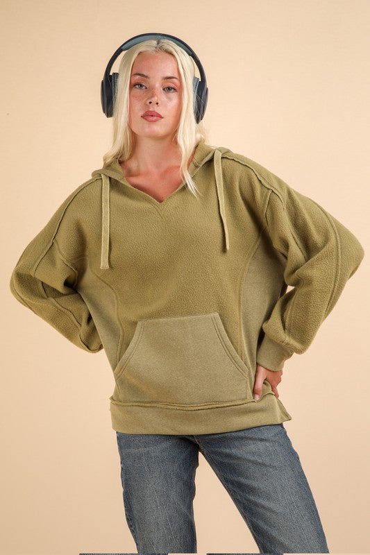 Relaxed, cozy, and perfectly broken-in. This mineral washed oversized hoodie is your new go-to for casual days — featuring a front pocket, drop shoulders, long sleeves, and raw edge detailing for that effortlessly lived-in look. The knit fabric gives it softness and drape, making it perfect for jeans, leggings, or lazy Sunday lounging.