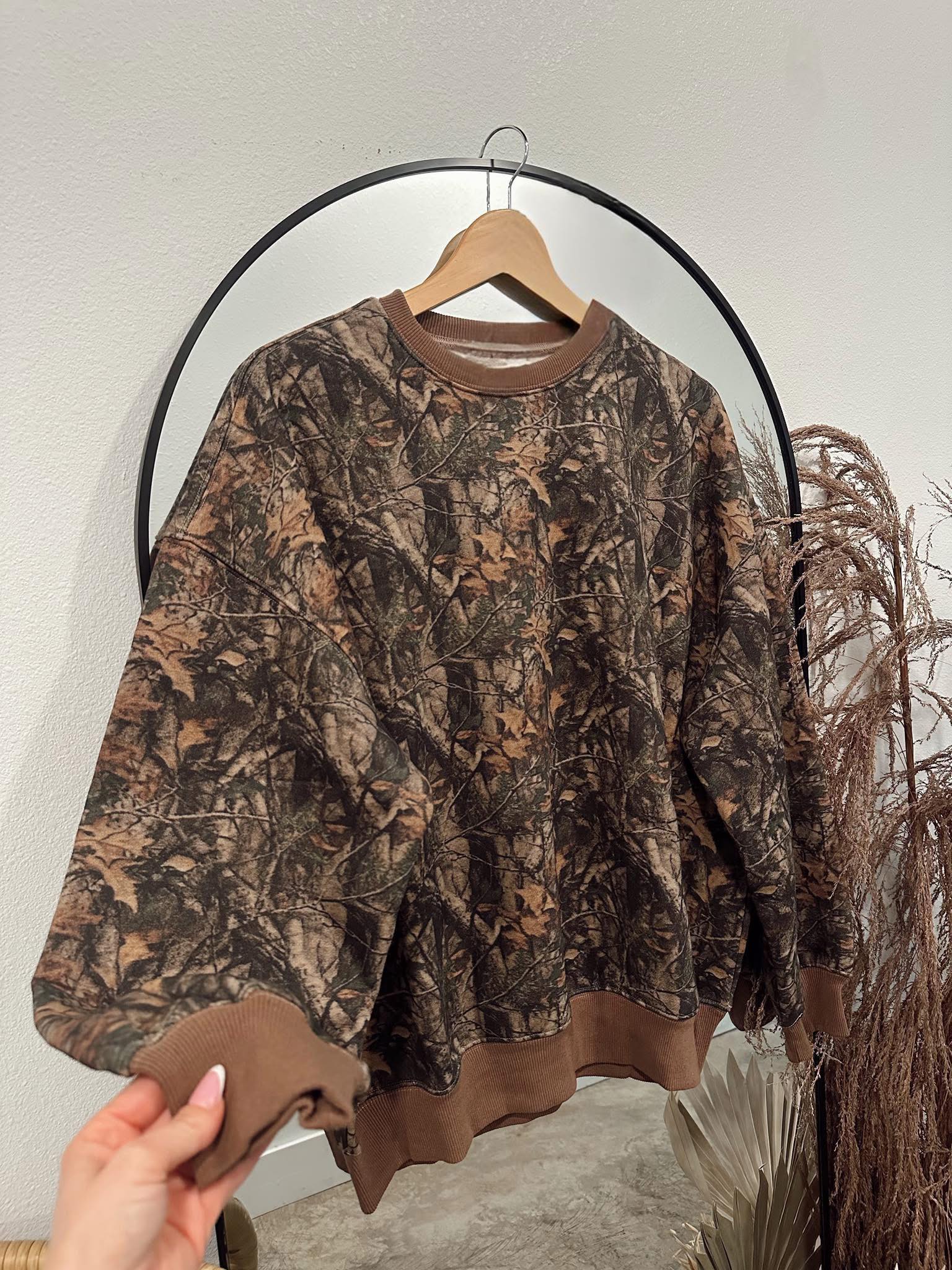 BAYOU Dark Woodland Camo Oversized Fleece Crewneck